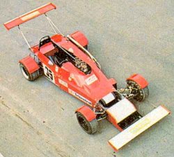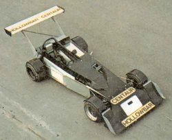 He and Rauri Gilles built and tested the first car in July 1976, but were plagued with engine problems and lack of power in the three races that year. This season they have still been developing but have managed two wins. In this car, the engine is ten inches further back to keep weight towards the rear. The standard BMC beam axle is held by parallel links; at the front, wishbones have been fabricated to keep the suspension as shallow as possible. There is an overall reduction in track to keep the car small and narrow. The front and rear wings help make the car very adjustable. |
